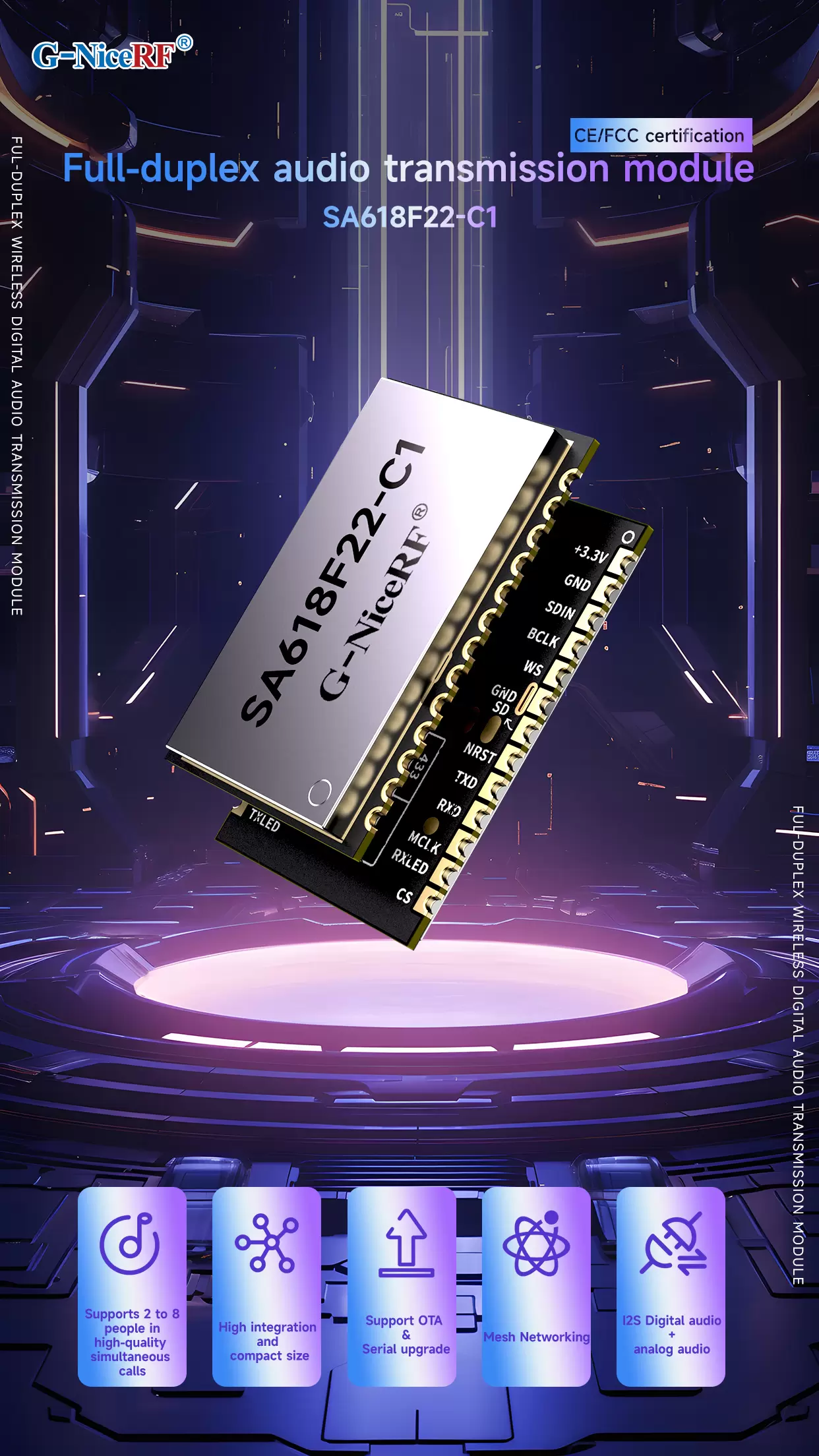 The newly released SA618F22-C1 has a power output of 160mW, and we will soon launch the SA618F30-C1, a high-power intercom module with a power output of 1W. The SA618F30-C1 will also comply with CE and FCC certifications. All modules developed independently by Siwei Wireless are produced and tested using lead-free processes, meeting RoHS and REACH standards. We welcome inquiries from manufacturers.