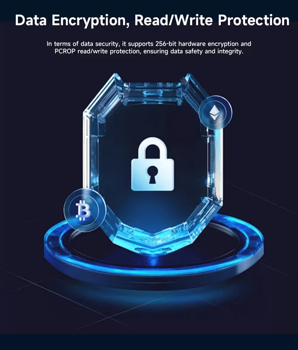it supports 256-bit hardware encryption, PCROP read/write protection, ensuring the security and integrity of the data.